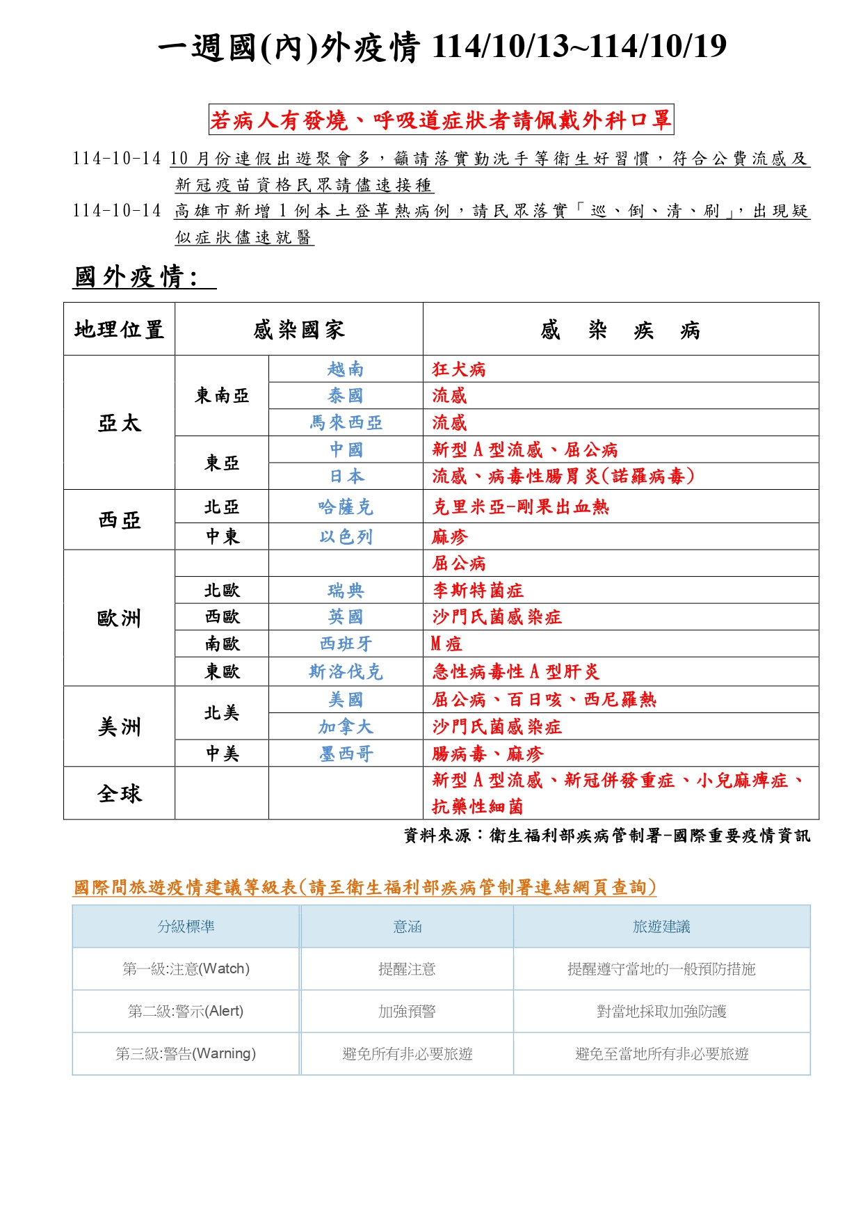一週國(內)外疫情 1141013-1141019