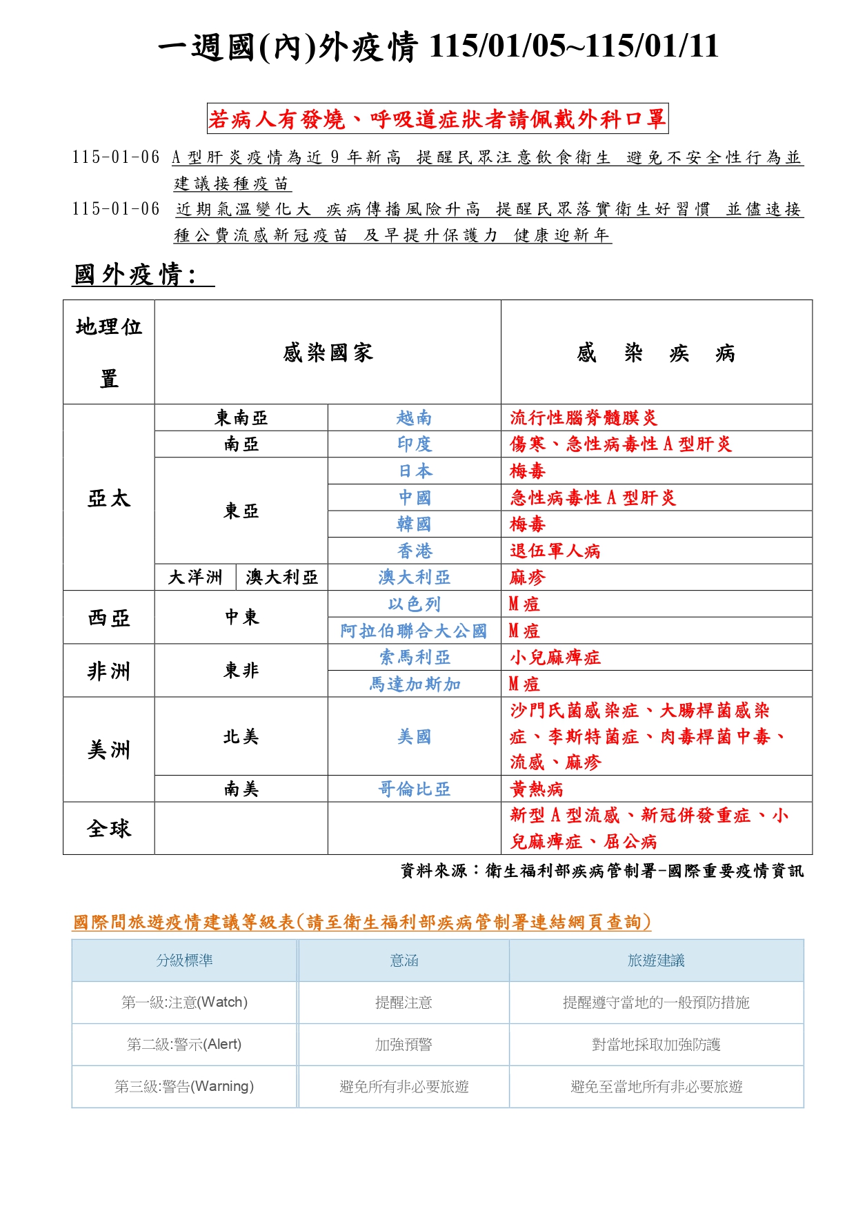 一週國(內)外疫情1150105-1150111_