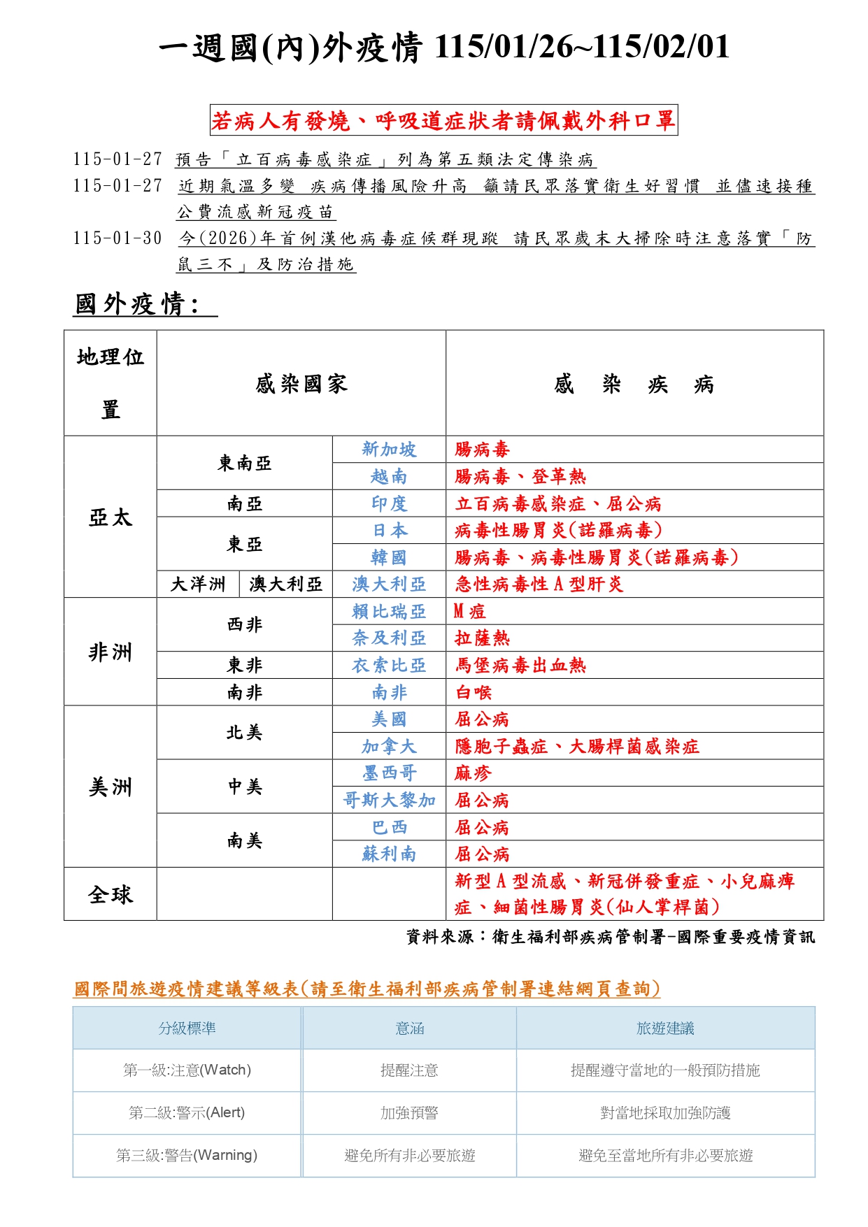 一週國(內)外疫情 1150126-1150201